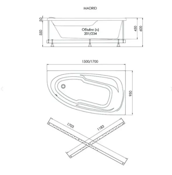 Акриловая ванна 1ACReal Мадрид Щ0000046659 левая 170x95 см на Х-каркасе белый купить