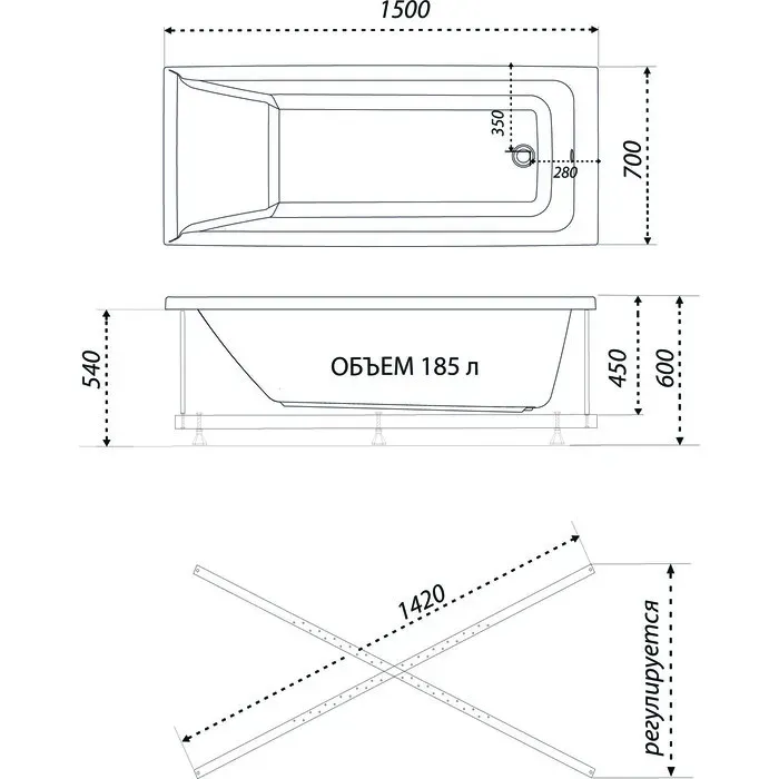 Акриловая ванна 1ACReal Тори Щ0000044549 150x70 см на Х-каркасе белый