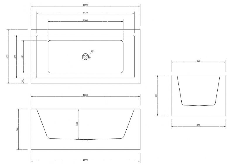Акриловая ванна ABBER AB9406-1.6 160х80