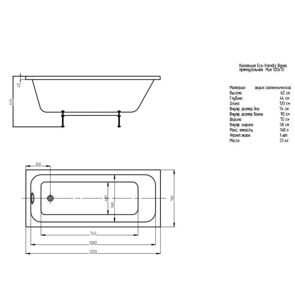 Акриловая ванна АКВАТЕК MIY120-0000001 Мия 120x70 смКомпания «Aquatek» выпускает на рынок новую ванну в эконом сегменте. Новинка относится к коллекции «Eco-friendly» и носит название «Мия». Данная ванна станет идеальным решением для тех, кто ищет максимально простую и дешевую модель, не желая при этом терять в качестве. Ванна «Мия», как и другие модели производства «Aquatek», изготовлена из 100% экологичного и безопасного акрилового листа ALTUGLAS и при этом имеет очень привлекательную цену. На выбор предоставляется 6 типовых размера – 120,140,150,160,165,170х70 см в классической прямоугольной форме с жесткой опорной конструкцией.Каркас,слив-перелив,фронтальная панель приобретаеться отдельно.
