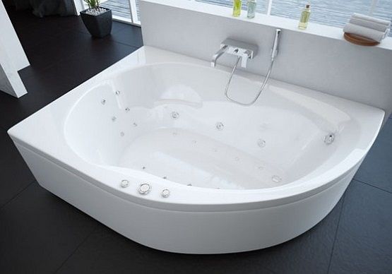 Размер ванны Вирго 150х100 позволяет расположить ее и в маленьких ванных комнатах. Благодаря угловой асимметричной форме ванны, Вы сможете разместить в ванной умывальник, стиральную машину, полотенцесушитель. Вместе с компактными внешними габаритами ванна довольно объемная — около 250 л. Оптимальное решение для экономии пространства. Возможно как левое, так и правое исполнение.