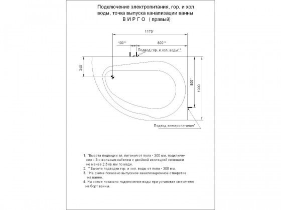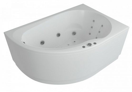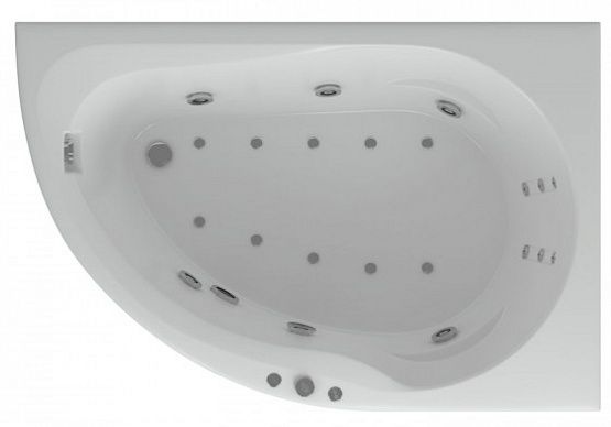 Размер ванны Вирго 150х100 позволяет расположить ее и в маленьких ванных комнатах. Благодаря угловой асимметричной форме ванны, Вы сможете разместить в ванной умывальник, стиральную машину, полотенцесушитель. Вместе с компактными внешними габаритами ванна довольно объемная — около 250 л. Оптимальное решение для экономии пространства. Возможно как левое, так и правое исполнение.