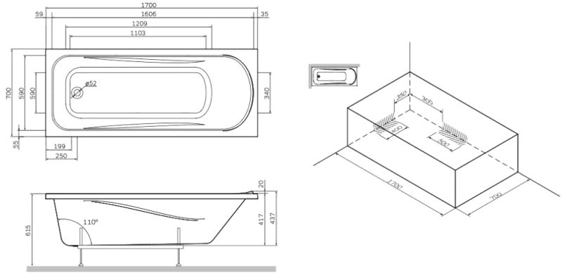 Акриловая ванна AM.PM Sense W75A-170-070W-KL 170/70 см