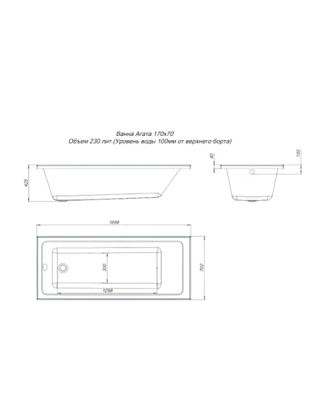 Акриловая ванна Aquanet Agata 352894 170x70 см с каркасом