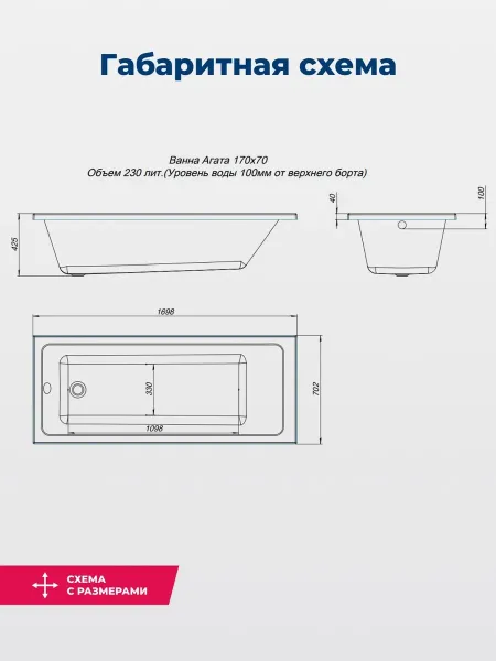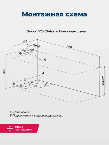 Ванна Aquanet AGATA 170х70 - это современная акриловая ванна, которая отлично впишется в любой интерьер ванной комнаты. Ее прямоугольная форма и качественный материал делают ее удобной для использования и долговечной. Ванна обладает легким монтажом на стену и комплектуется каркасом для устойчивости, что дает безопасность и комфорт при эксплуатации.