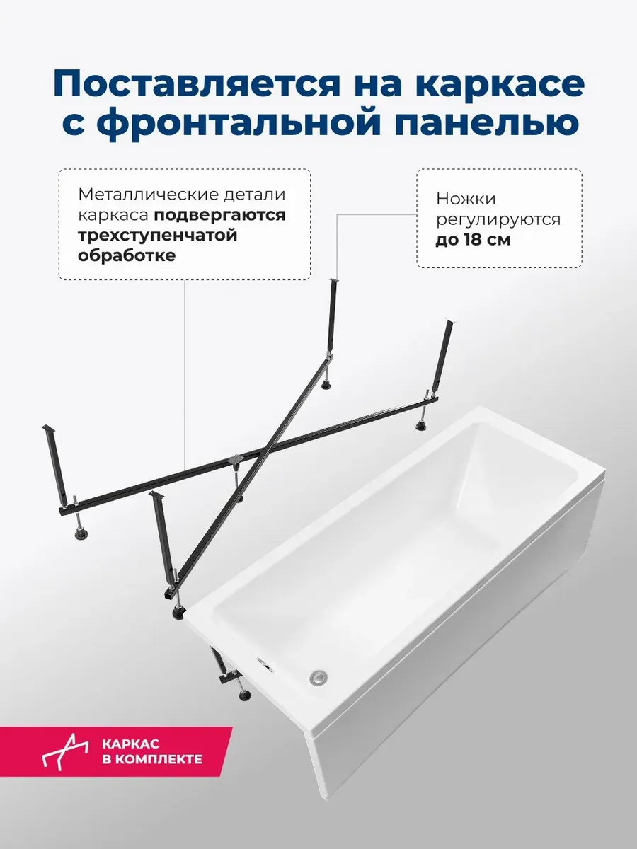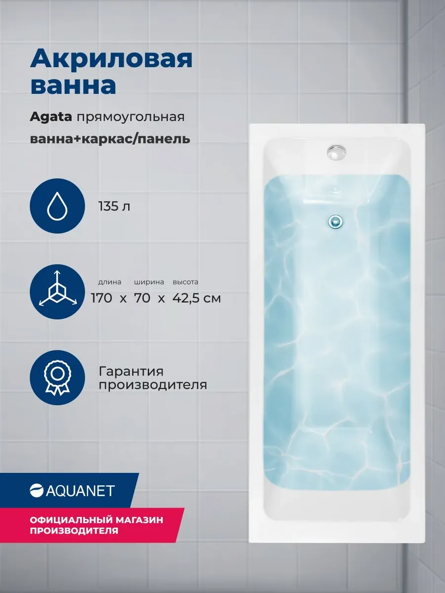Акриловая ванна Aquanet Agata 365869 170x70 см с каркасом и фронтальной панелью купить