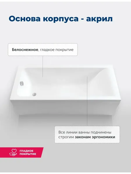 Акриловая ванна Aquanet создана с учетом растущего спроса на ванны простой прямоугольной формы в популярных размерах. Это модель с прямыми бортами и пологой спинкой, где соблюден идеальный угол для комфортного нахождения в ванне. Спинка плавно перетекает в бортик, поэтому релакс гарантирован даже без использования подголовника. Все линии ванны подчинены строгим законам эргономики. Чаша в этой ванне устроена таким образом, что для обозначенных размеров в ней достигнут максимально возможный внутренний объем, и это при комфортной глубине от слива ванны до борта. Ванна рассчитана на нагрузку свыше 300 кг, так что даже крепкий мужчина сможет без опаски находиться в ней. Двойной слой армирования обеспечивает надежность чаши, а закладные из МДФ-плит в местах наибольшей нагрузки усиливают эффект.