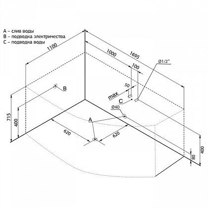 • Размер: 170x110x75 см. Глубина: 56 см. Объем: 380 л.