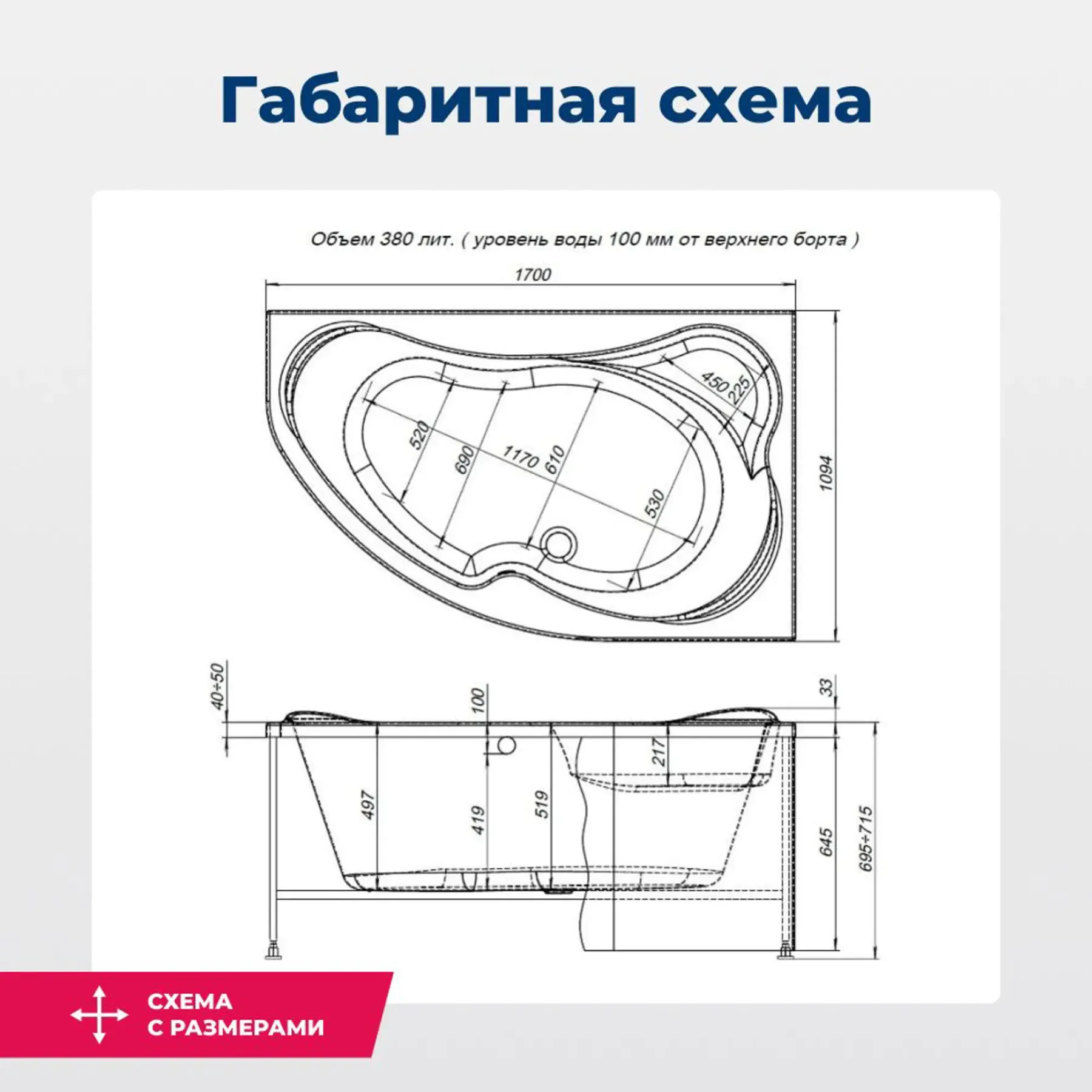 Акриловая ванна Aquanet Capri 310237 170x110 правая Характеристики: Цвет: белый. Материал: ... Подробнее