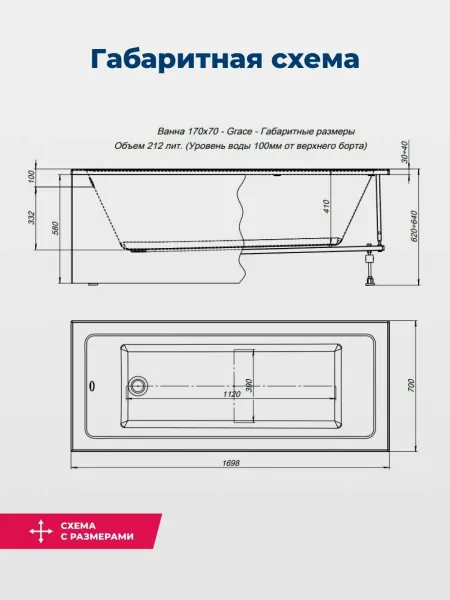 Акриловая ванна Aquanet Grace 170x70 классической прямоугольной формы отлично впишется в совреме... Подробнее