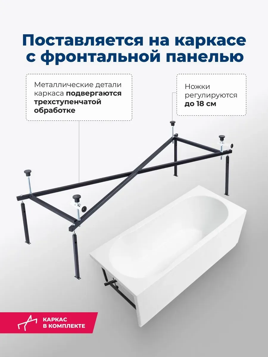 Акриловая ванна Aquanet Light 347155 170x70 см с каркасом и фронтальной панелью купить
