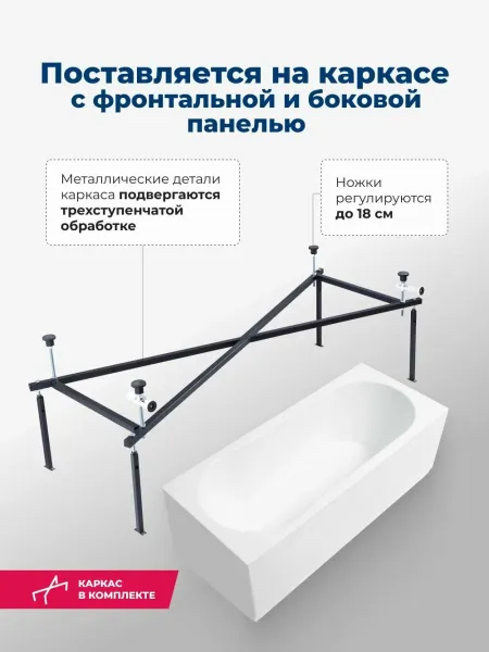 Акриловая ванна Aquanet Light 347880 170x70 см с каркасом с боковой и фронтальной панелями купить