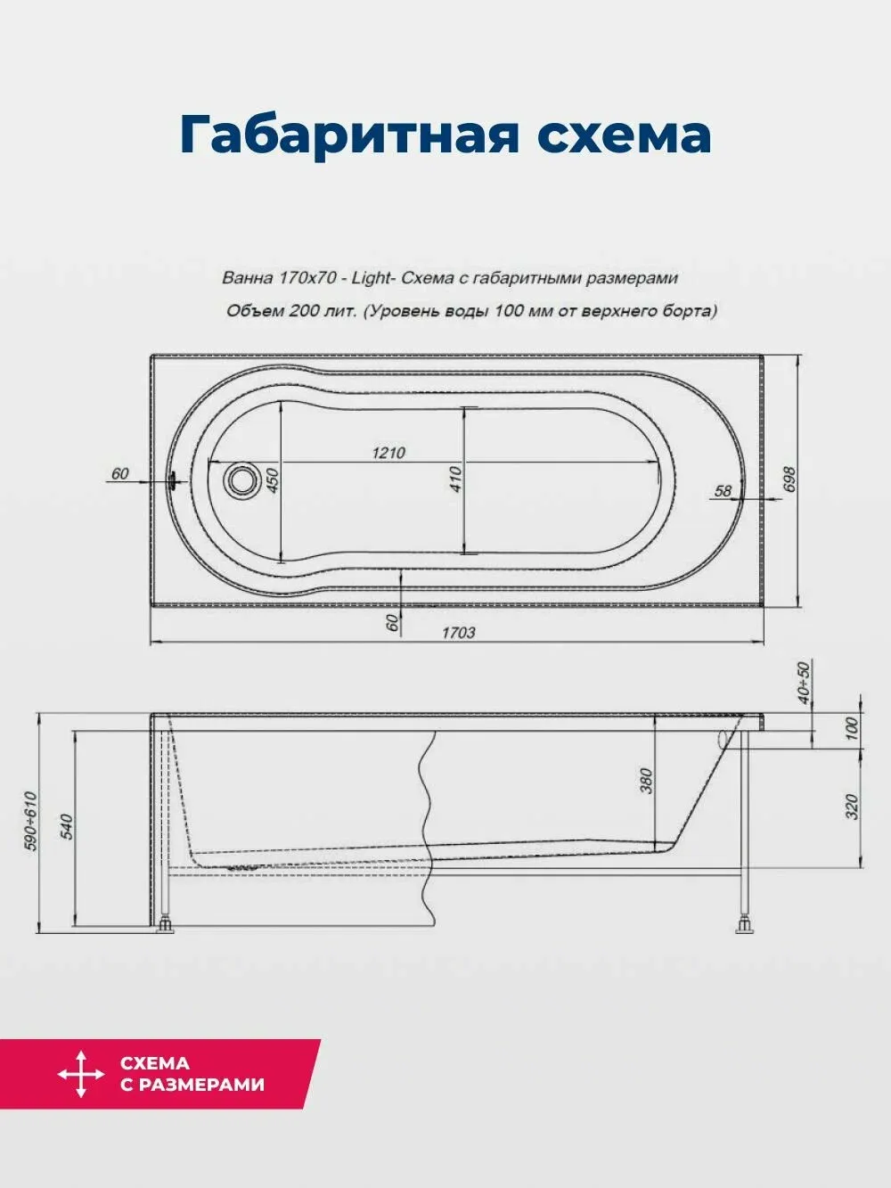 Стандартные размеры, см:170x70