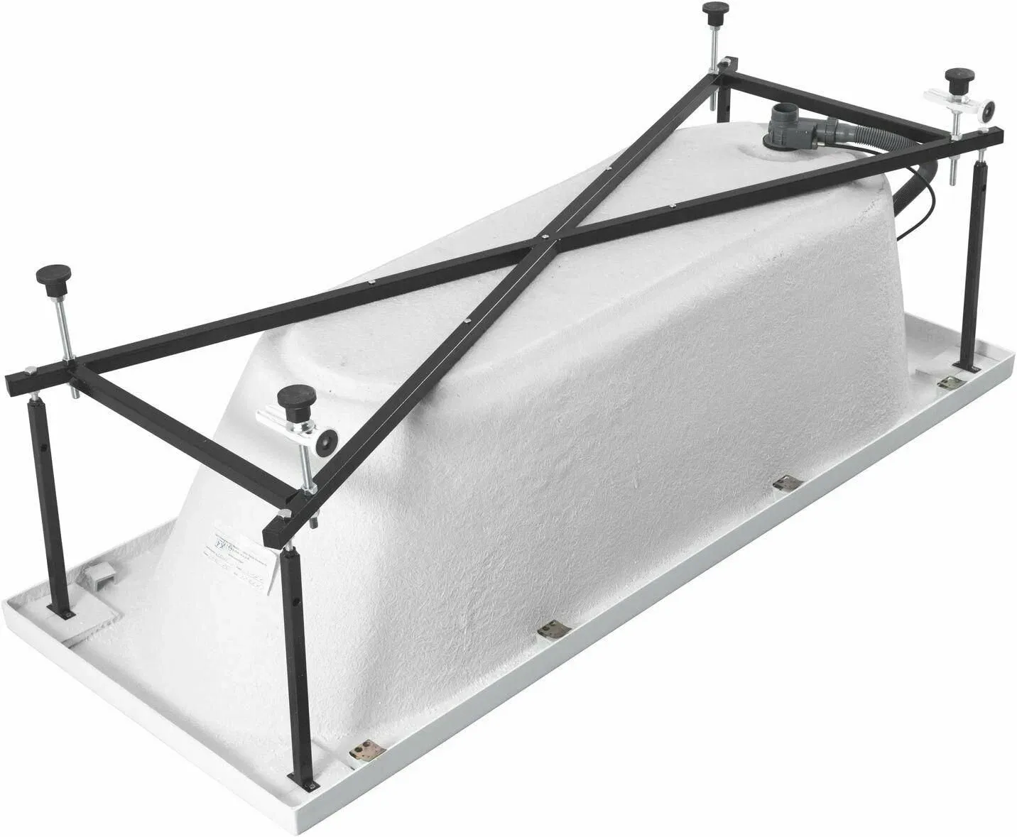 Ванна уже установлена на жесткий сварной каркас из металлического профиля. Металлические детали каркаса подвергаются трехступенчатой обработке, когда сначала профильная труба проходит абразивную зачистку на специальном станке, после чего готовые детали обрабатывают каустической содой, и, просушив, покрывают с помощью электростатического распылителя молотковой краской по металлу. Это гарантирует равномерность окрашивания и стойкость покрытия.