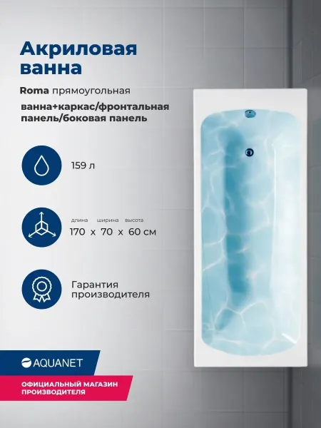 Акриловая ванна Aquanet Roma 347890 170x70 см с каркасом с боковой и фронтальной панелями купить