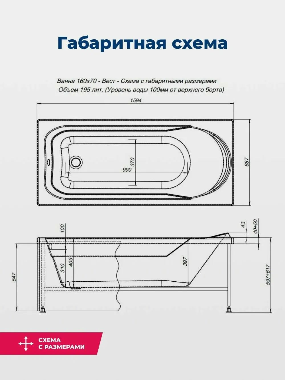 Акриловая ванна Aquanet West 347178 160x70 см с каркасом и фронтальной панелью