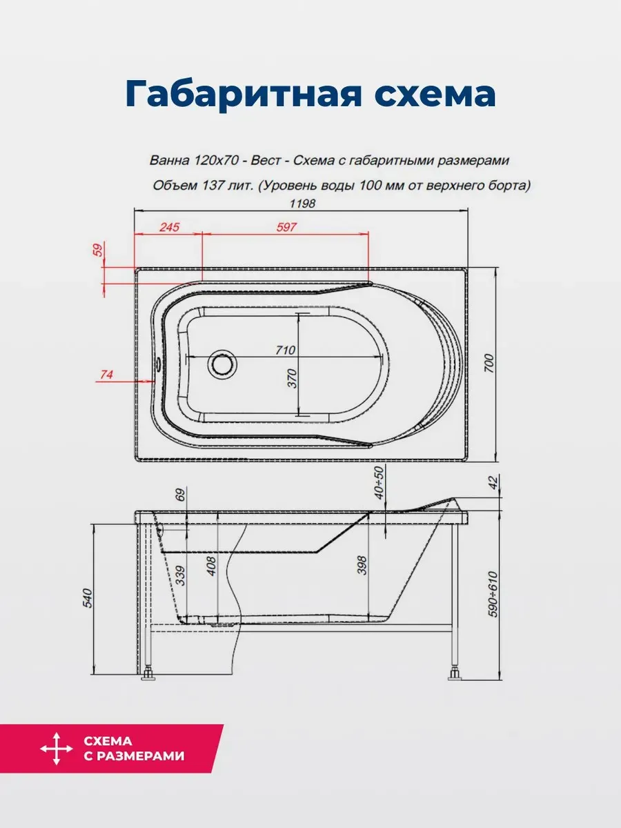 Акриловая ванна Aquanet West 120x70 - прекрасный выбор модели эконом-класса. На первый взгляд он... Подробнее