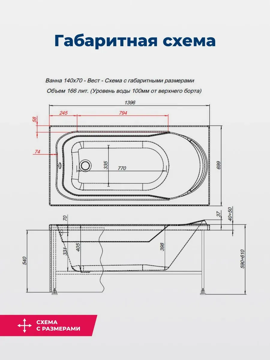 Акриловая ванна Aquanet West 347899 140x70 см с каркасом с боковой и фронтальной панелями