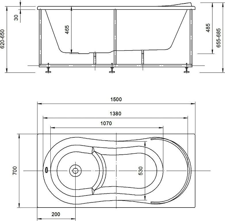 Акриловая ванна Aquatek Афродита AFR150-0000079 150х70 см