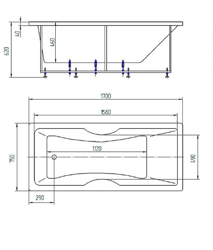 • Ванна устанавливается на каркас, который поставляется в комплекте