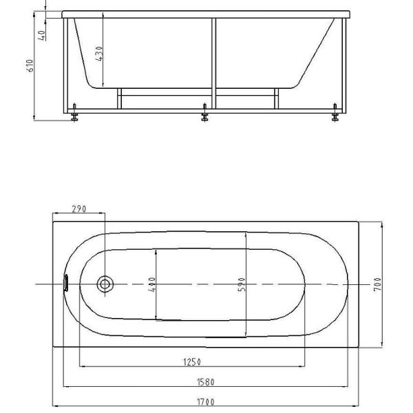 Габариты (Д Ш), см: 170х70Высота с опорой, см: 61Объем, л: 210 Форма: прямоугольнаяМонтаж: пристеннаяРасположение перелива: стандартноеДиаметр слива ванны, см: 5,2Материал: 100% литьевой акрилТолщина акрилового листа, мм: 4Гарантия: 20 летСтрана: Россия Вид опоры: каркас сборно-разборный сварной, есть в комплектеЭкран: фронтальный в комплектеСлив-перелив: есть, в комплектеАнтискользящее покрытие: нескользкая поверхностьПодголовник: приобретается отдельноРучки: приобретаются отдельно Система гидромассажа: установка по желаниюАэромассаж: установка по желаниюХромотерапия: установка по желаниюРучки, поручни для ванны: установка по желаниюВстроенные смесители: установка по желаниюИзменение конструкции каркаса: установка по желаниюОзонирование: нет, установка не предусмотренаЗащита от сухого пуска: установка по желаниюУправление: любое по желанию