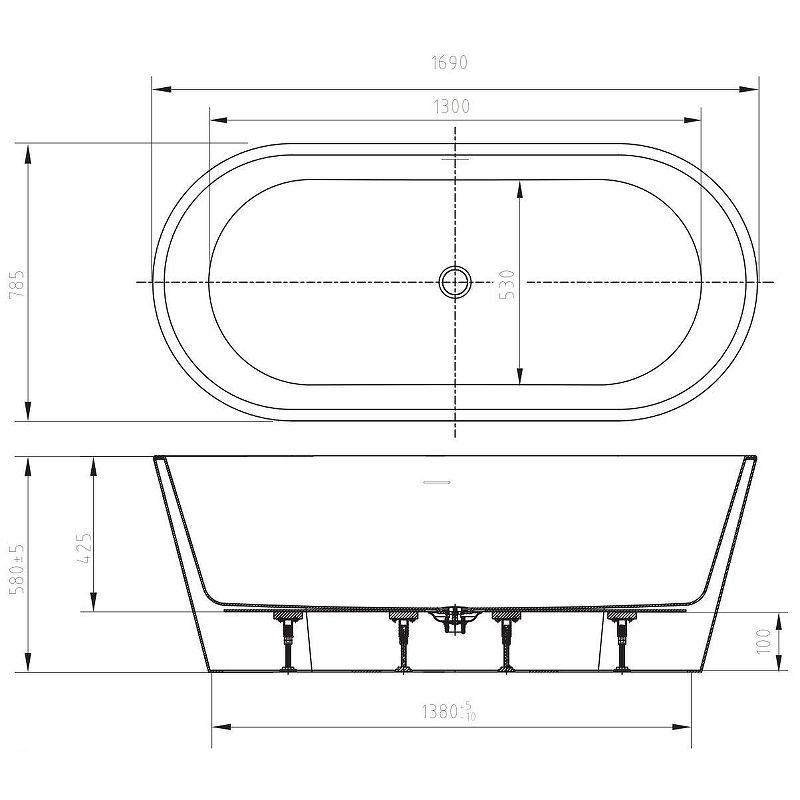 Акриловая отдельностоящая ванна, изготовленная из 100% литьевого акрила, имеет глянцевую, непористую поверхность, что препятствует развитию бактерий и грязи.