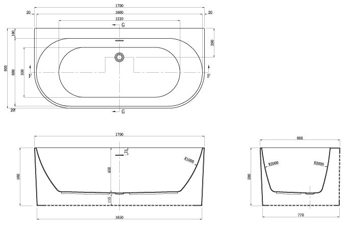 Акриловая ванна Azario BRADFORD BRA18080 пристенная 1800х800х580