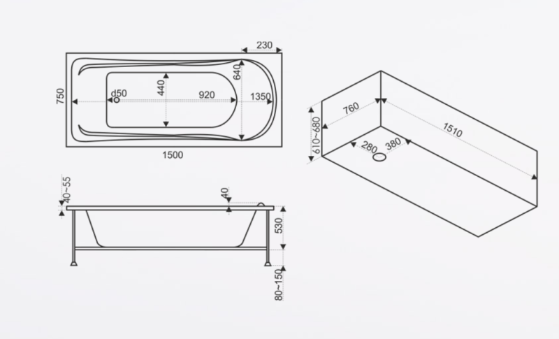 Акриловая ванна Bas Бриз 150x75 без гидромассажа