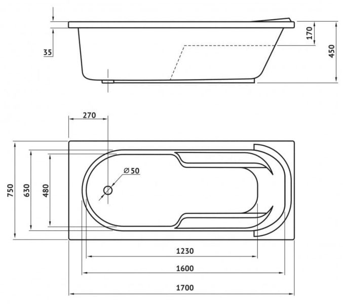 Акриловая ванна Berges Lumbo с каркасом 170x75см белый 050004 050006
