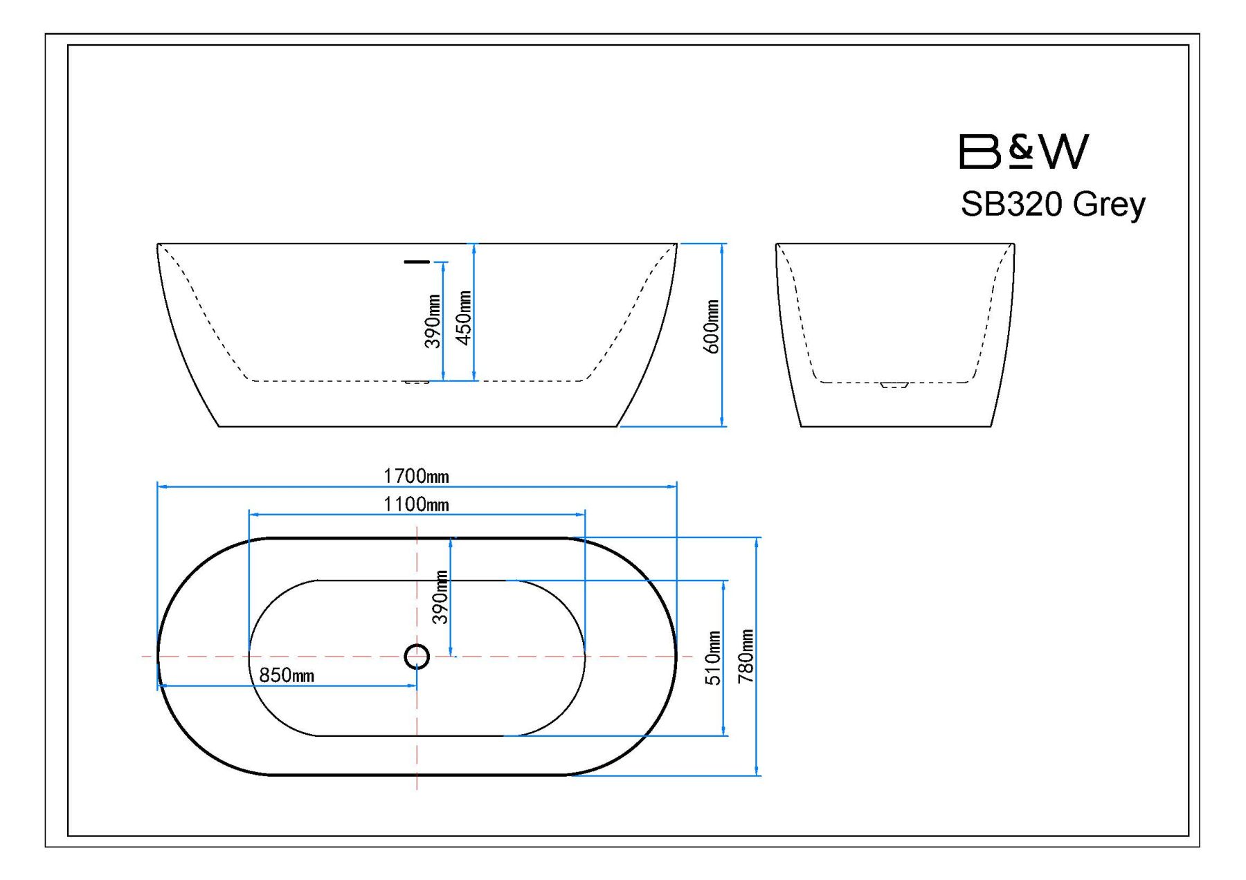 Акриловая ванна Black&White Swan SB320 Grey 1700 x 780 x 600 мм