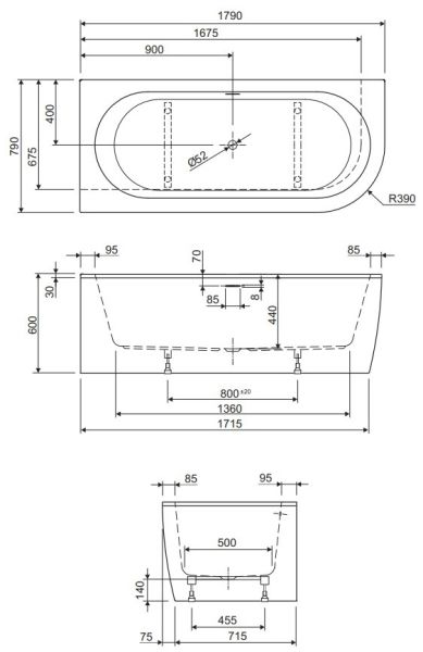 Акриловая ванна Cezares Slim Corner левая 179x79см белый SLIM CORNER-180-80-60-L-W37-SET