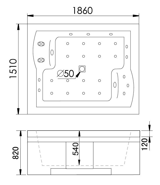 Акриловая ванна Gemy G9052 II O R 186x151x82
