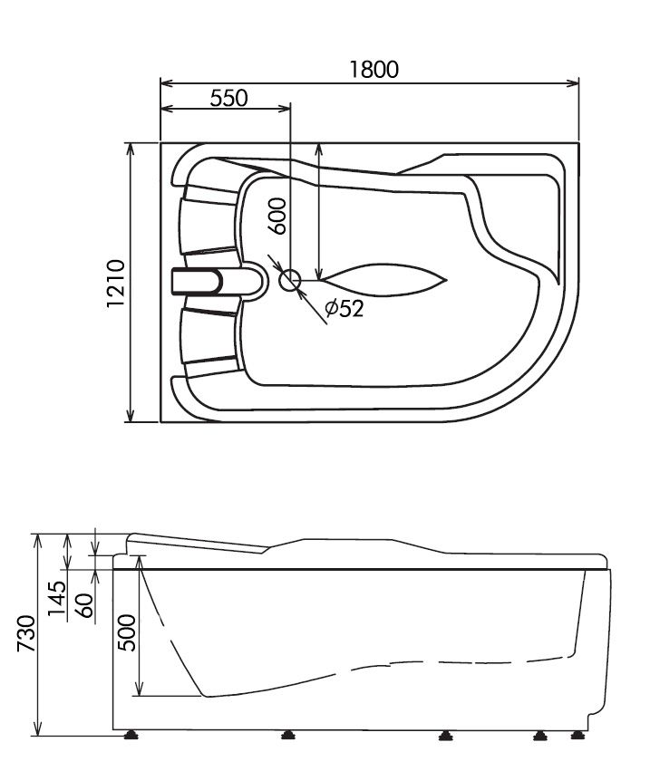 - гидромассаж, 5 больших форсунок