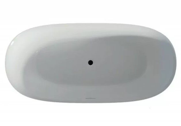 Отдельно стоящая овальная, глянцевая белая акриловая ванна RIHO Alpha 170х80 с тонкими двойными стенками, со встроенным переливом.