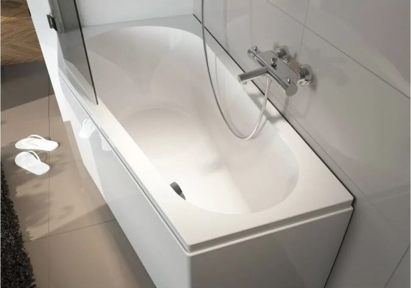 Материал непористый и гладкий, поэтому на нём не остаются известковый налёт и бактерии, поверхность ванны легко очищается.