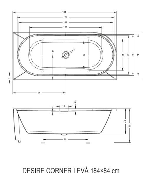 Акриловая ванна Riho Desire Corner Velvet Sparkle System Fall B088009105 L 184x84см с аэромассажем заполнение через перелив белый матовый