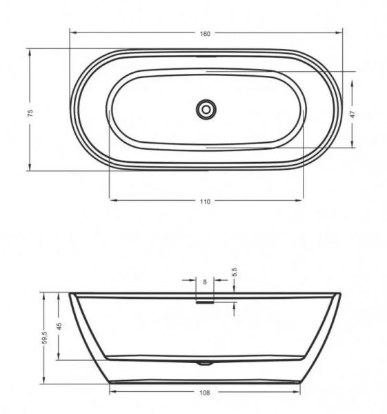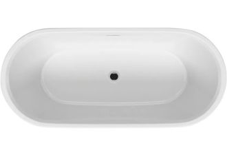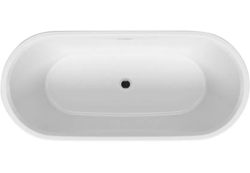 Отдельно стоящая, глянцевая белая акриловая ванна RIHO Inspire 160х75 с двойными стенками, со встроенным переливом и нажимным донным клапаном.