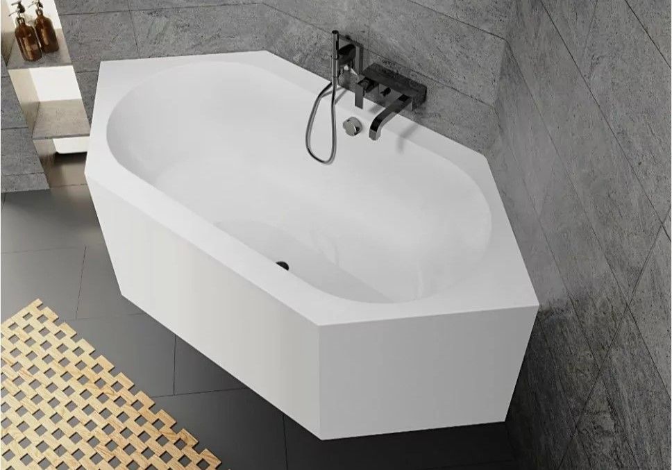 ?Оригинальная ванна RIHO Kansas Plug & Play шестиугольной формы, из глянцевого белого акрила, представляет собой полностью собранную на заводе конструкцию.