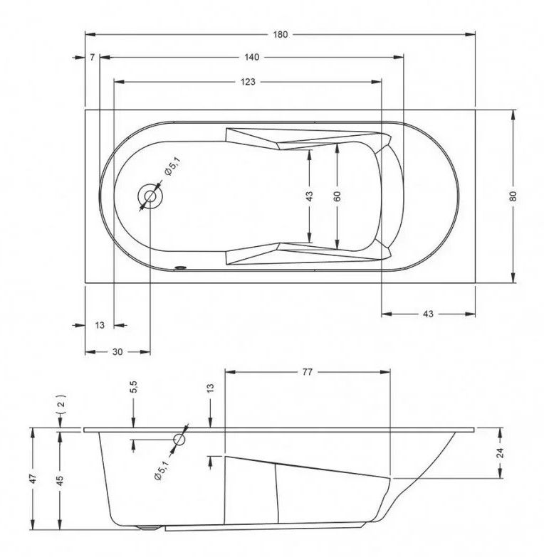 Ванна имеет небольшие элегантные подлокотники и спинку комбинированной формы: в ванне удобно и сидеть, и лежать.