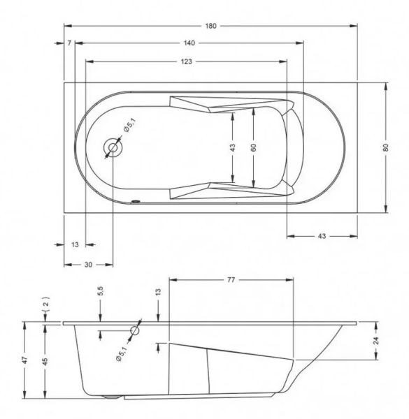 Традиционное боковое расположение слива в ногах, эргономичная форма чаши идеальны для использования одним человеком.