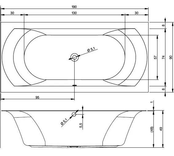 Слив-перелив расположен по центру ванны, спинки - симметричные.