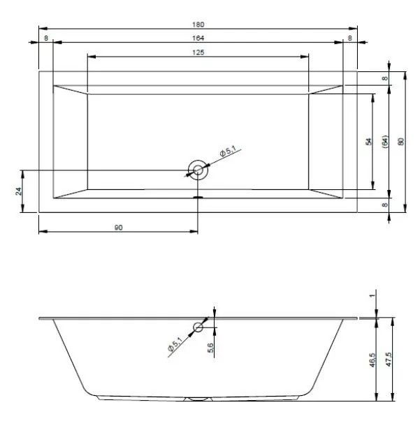 Акриловая ванна RIHO Lugo 180x80 изготовлена из высококачественного листа акрила белого цвета, полностью армирована.