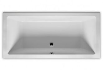 Прямоугольная? ванна RIHO Lugo 180x90 R Plug & Play, из глянцевого белого акрила с прямыми симметричными спинками, гладкой внутренней формой и центральным сливом, представляет собой полностью собранную на заводе конструкцию.