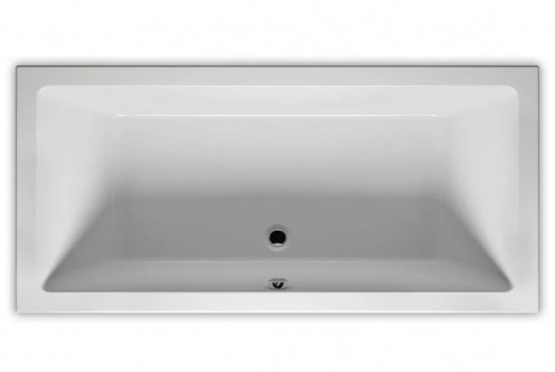 Прямоугольная? ванна RIHO Lugo 180x90 L Plug & Play, из глянцевого белого акрила с прямыми симметричными спинками, гладкой внутренней формой и центральным сливом, представляет собой полностью собранную на заводе конструкцию.