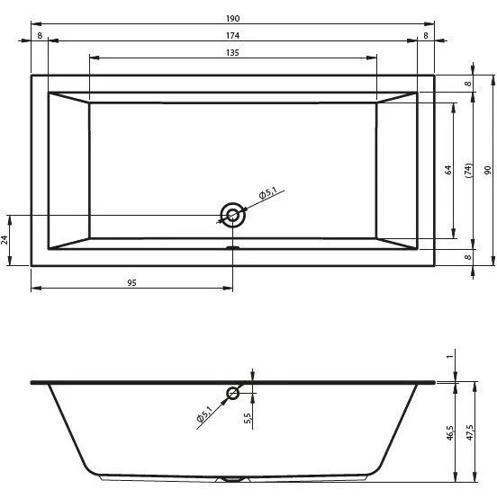 Материал непористый и гладкий, поэтому на нём не остаются известковый налёт и бактерии, поверхность ванны легко очищается.