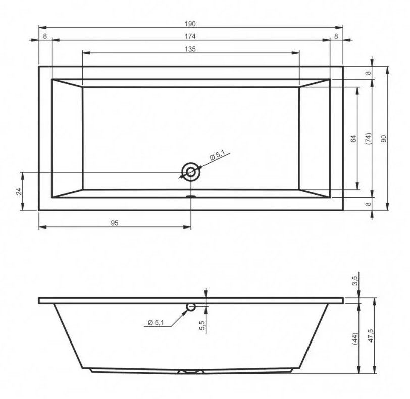Материал непористый и гладкий, поэтому на нём не остаются известковый налёт и бактерии, поверхность ванны легко очищается.