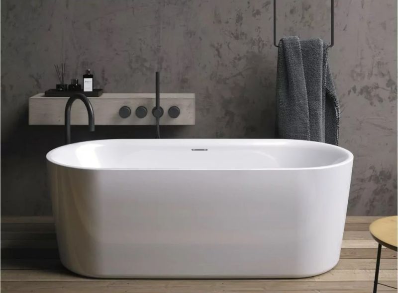 Отдельно стоящая белая матовая ванна RIHO Modesty 170х76 VELVET FALL достойна своего названия: ванна сочетает в себе роскошный внешний вид с комфортом и удобством для пользователя, не будучи эксцентричной. Это ванна овальной формы с красивым тонким бортиком.