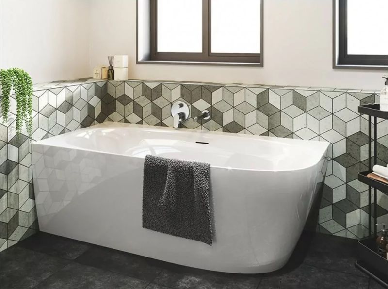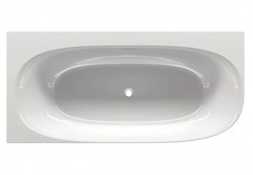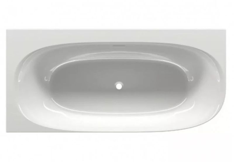 Отдельно стоящая угловая, глянцевая белая акриловая ванна RIHO Omega CORNER 170х80 R с тонкими двойными стенками, со встроенным переливом.