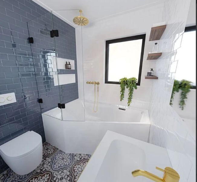 Тонкие борта ванны создают большое внутреннее пространство, где удобно лежать и принимать душ.