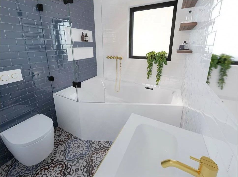 Тонкие борта ванны создают большое внутреннее пространство, где удобно лежать и принимать душ.